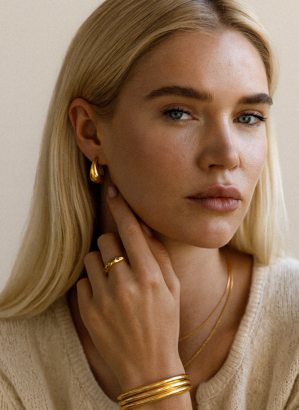 Våre smykker lages av 316L rustfritt stål med 18K PVD-gullbelegg – et ekstremt holdbart og 100 % resirkulerbart materiale. Den lange levetiden og slitestyrken reduserer overforbruk og avfall, noe som gjør det til et mer miljøvennlig alternativ enn tradisjonelle smykkematerialer.
