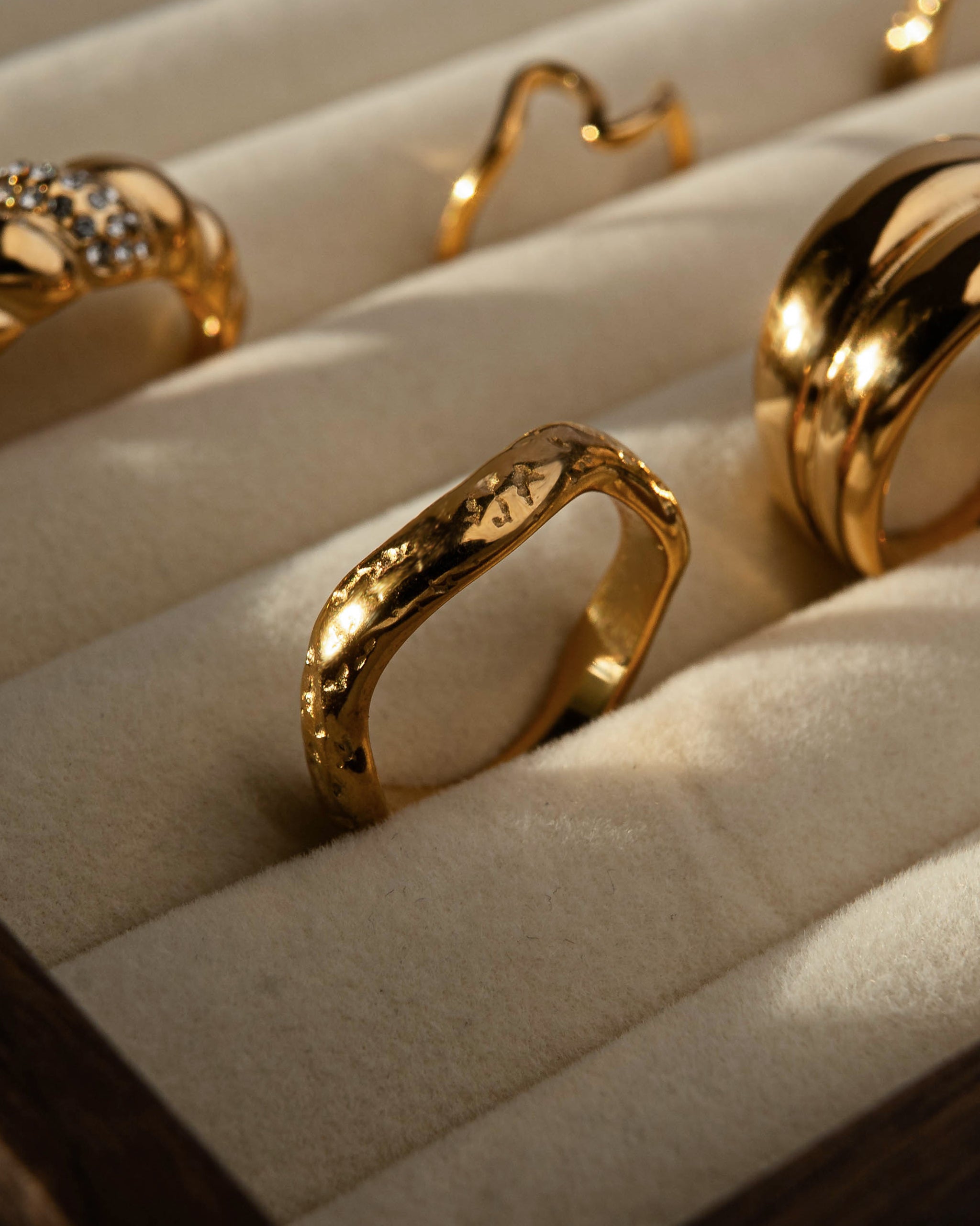 This ring is made to elevate your everyday — bold enough to stand out, timeless enough to wear forever. Swim, shower, and take on the world without a second thought. Crafted from solid stainless steel and finished with a rich 18K gold PVD coating, they're 100% waterproof and built to shine, day after day.