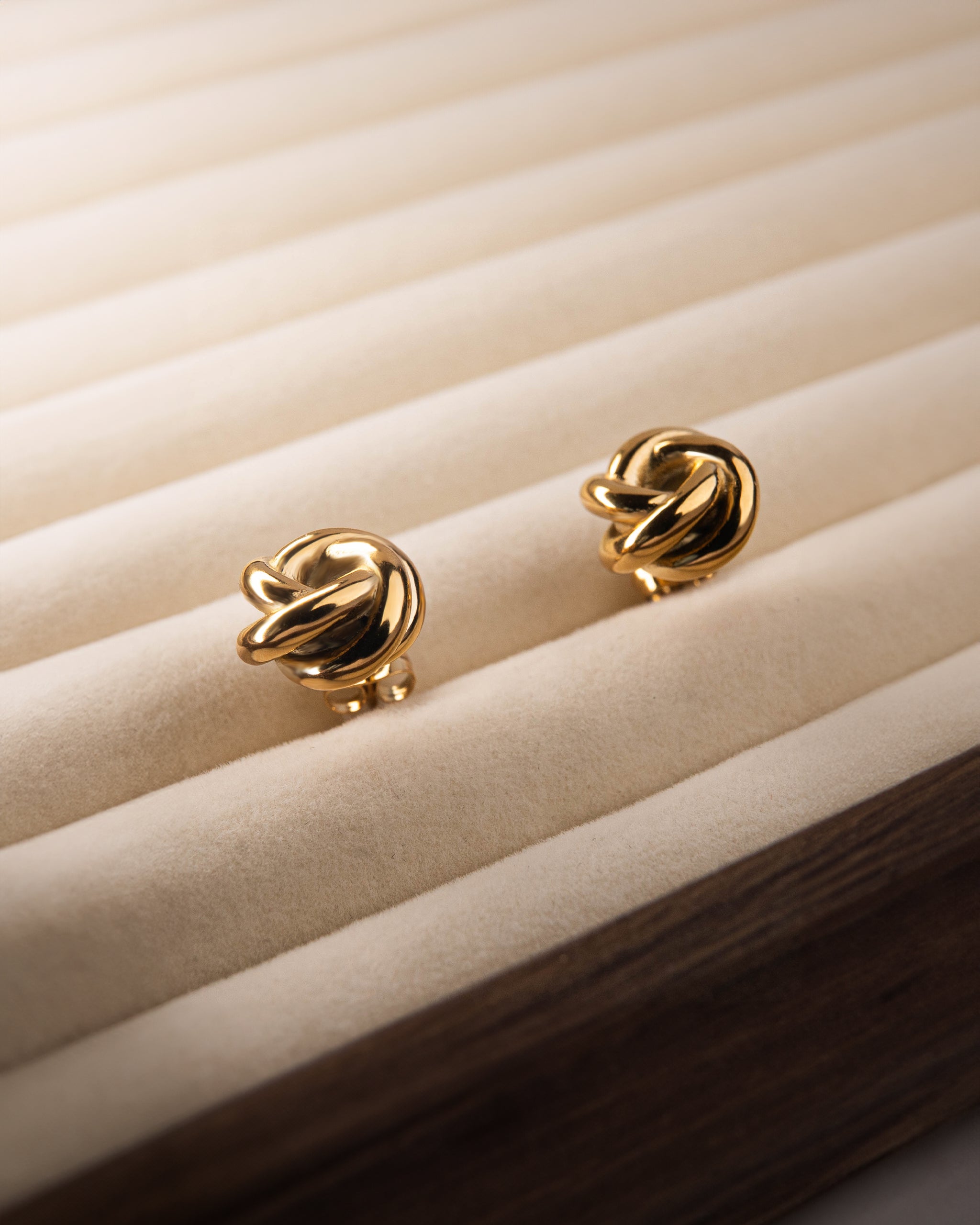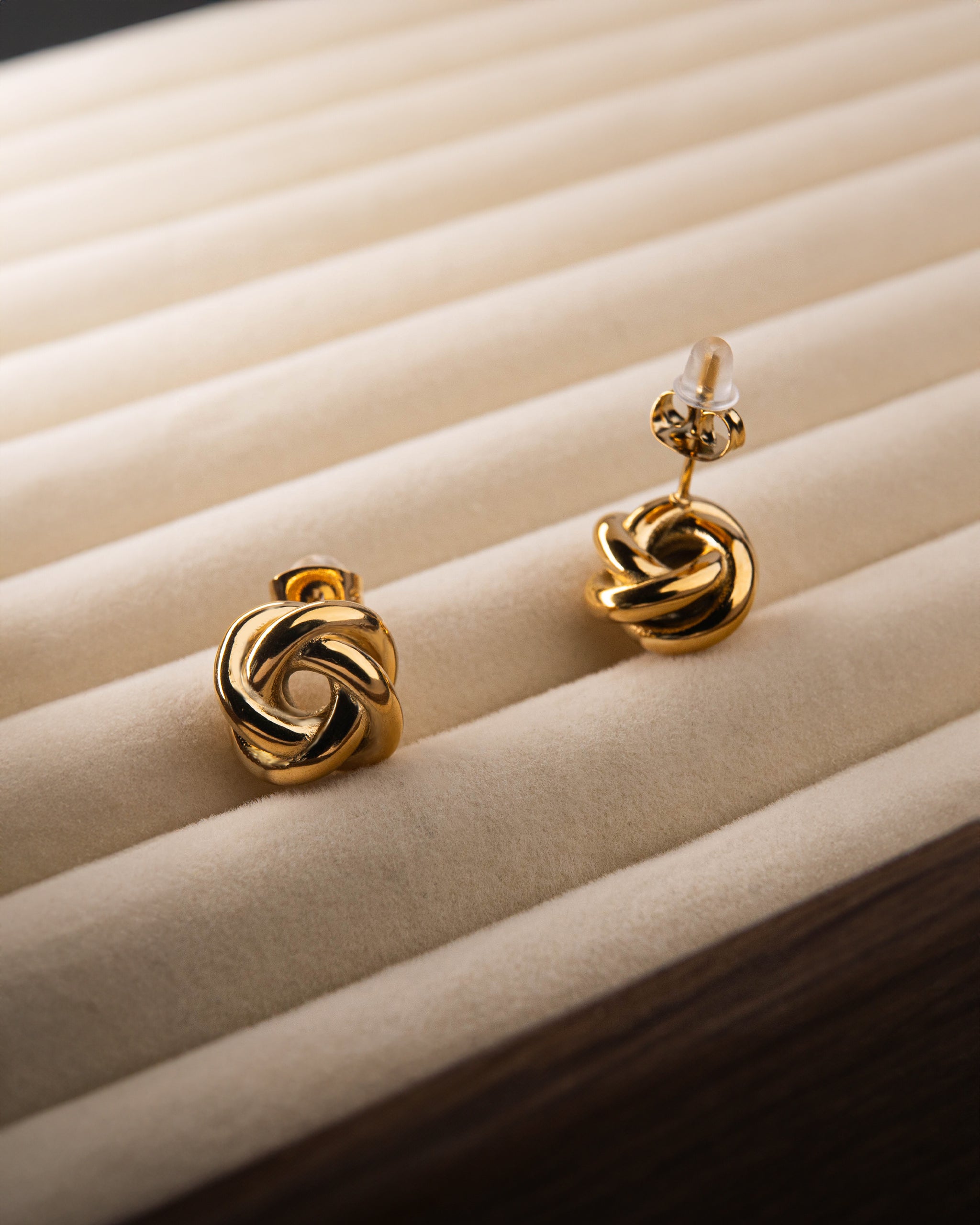 Disse øredobbene i 18K gullbelagt rustfritt stål kombinerer elegant design med solid holdbarhet. Lette, komfortable og vannbestandige – perfekte for både hverdag og fest. Den varme gulltonen gir et raffinert uttrykk uten å rope etter oppmerksomhet. Et par du kommer til å bruke igjen og igjen.